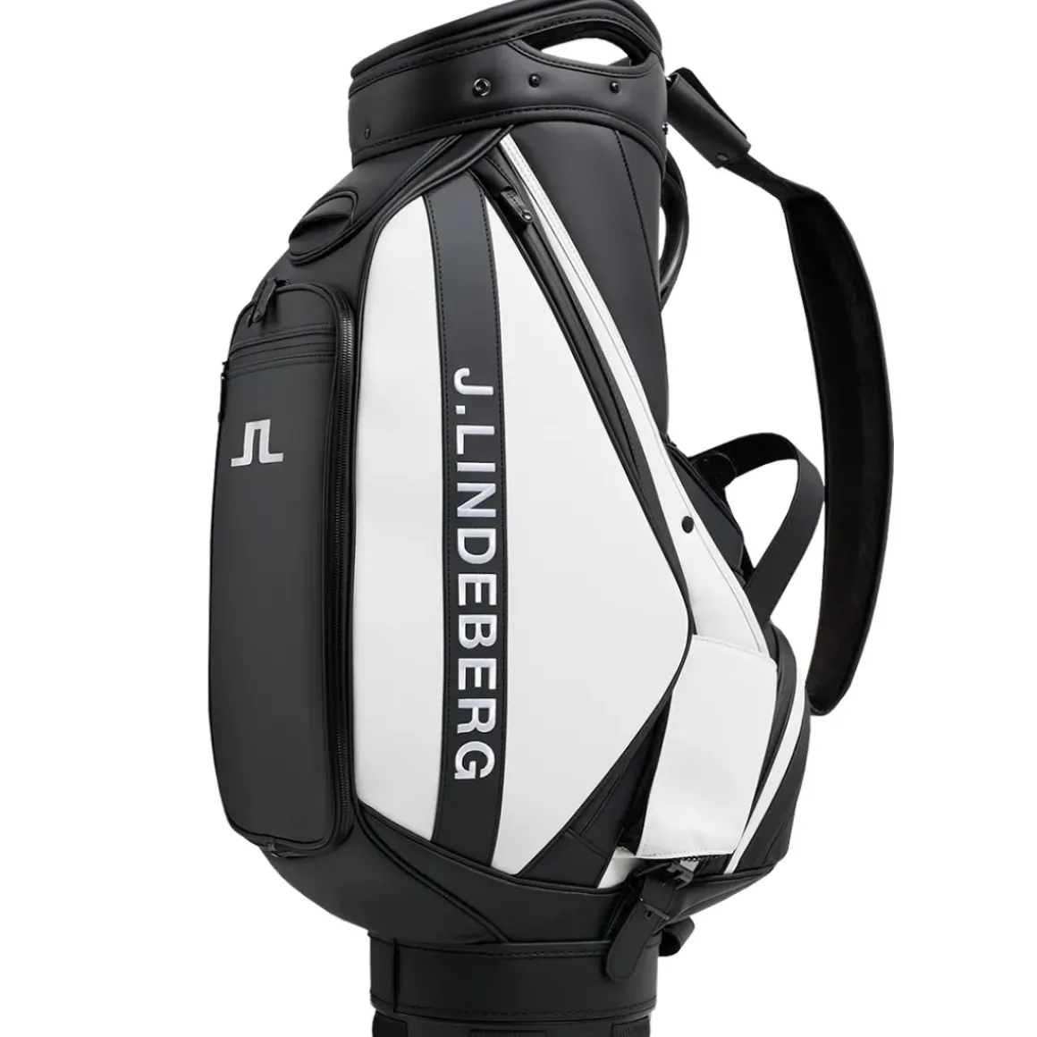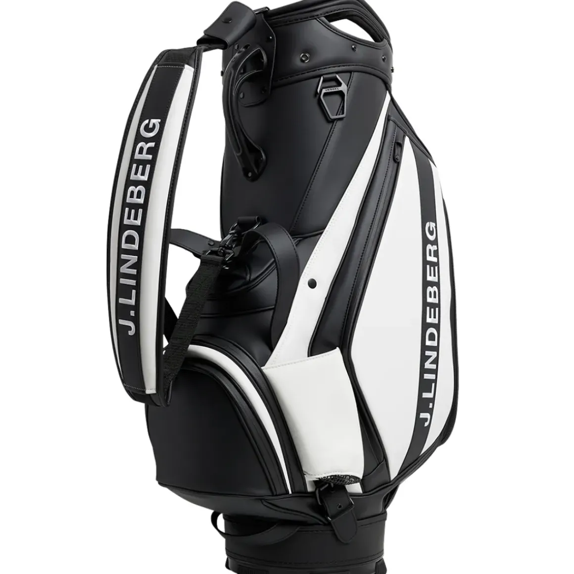 This J.Lindeberg staff bag has a premium and oversized construction to organise like a professional golfer. It has a sturdy synthetic leather material construction for easy maintenance and a single padded shoulder strap for carrying convenience.