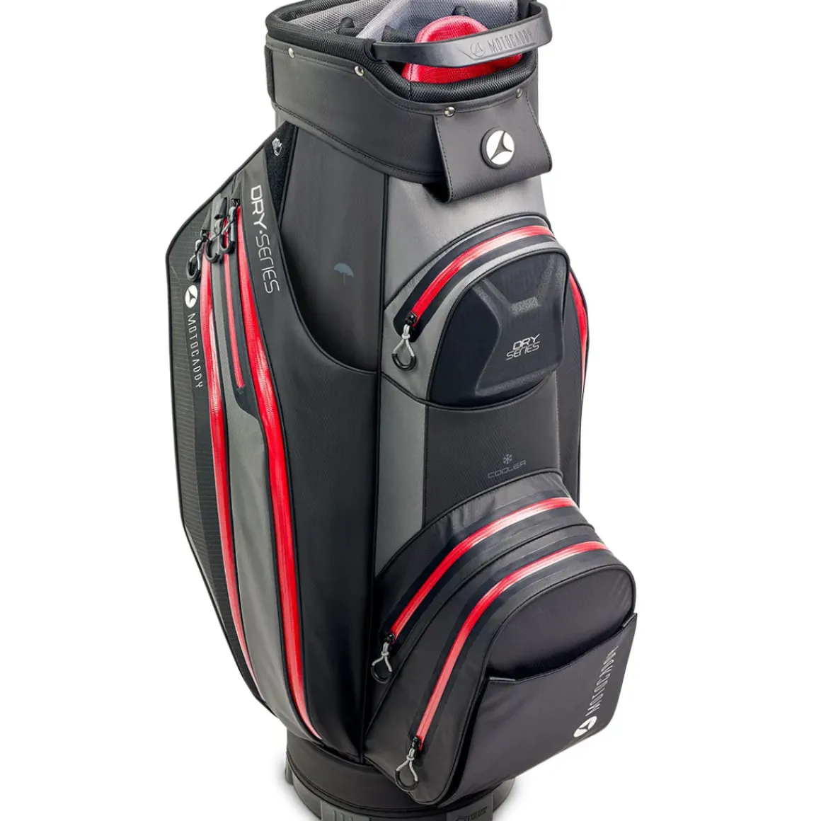This super-light and waterproof Motocaddy golf cart bag is constructed with an extremely waterproof fabric. Complete with thermo-sealed and heat‑welded seams to prevent moisture from getting inside and damaging goods.