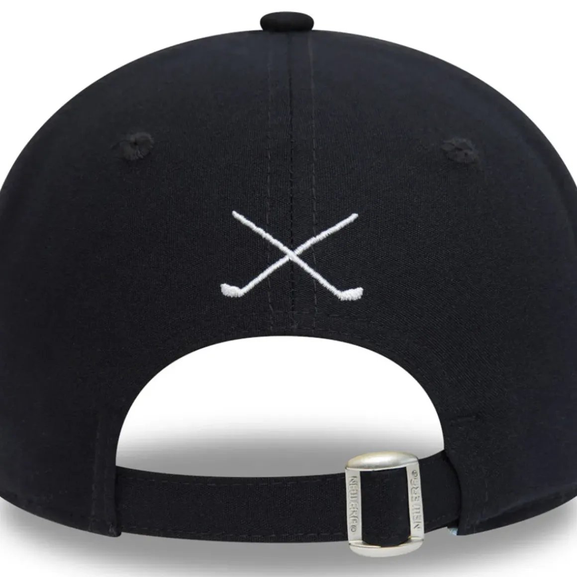 This New Era cap has been crafted with Repreve recycled fabric with perforation holes in the sides for added performance. Complete with a pre-curved bill and a D-ring closure strap at the rear for an adjustable fit. The golf cap is highlighted with a NEW ERA silicon badge logo, contrasting embroidered clubs on the rear, and an NE flag at the side for authenticity.