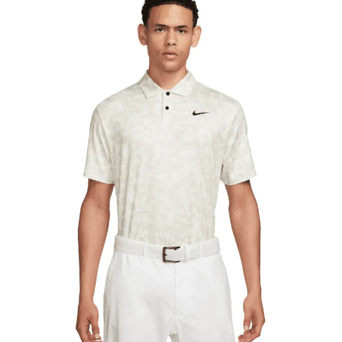 This Nike Golf polo shirt has been crafted with a stretch-knit fabric that lets you get the most from your swing. Equipped with Dri-FIT technology that moves sweat away from your skin for quicker evaporation, helping you to stay dry and comfortable as you perform. The design features a fold-over collar with mesh at the rear for added breathability, and a 2-button placket to let you adjust your style. Highlighted with an all-over print and swoosh branding on the left chest for authenticity.