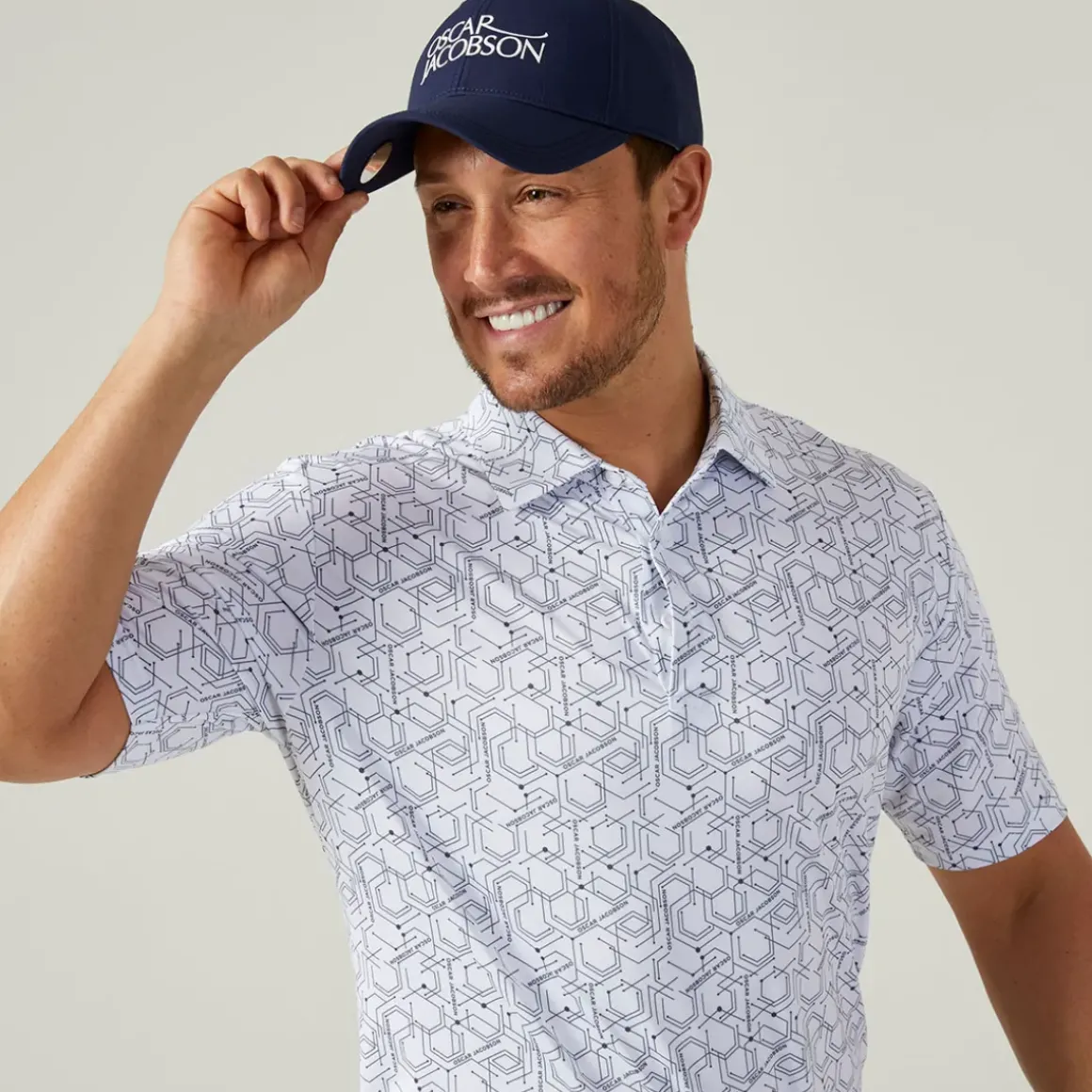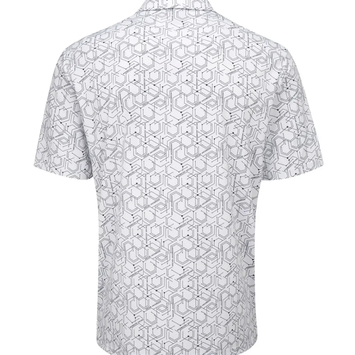 This J.Lindeberg polo shirt is made with a technical stretch fabric to allow you to perform without restriction. The fabric offers high levels of breathability to provide enhanced cooling and moisture management. Designed with a 3-button placket, self-fabric stand collar, and highlighted with an all-over geo print for stand-out style. Complete with an OJ logo flat print to the right sleeve and back neck for added appeal.