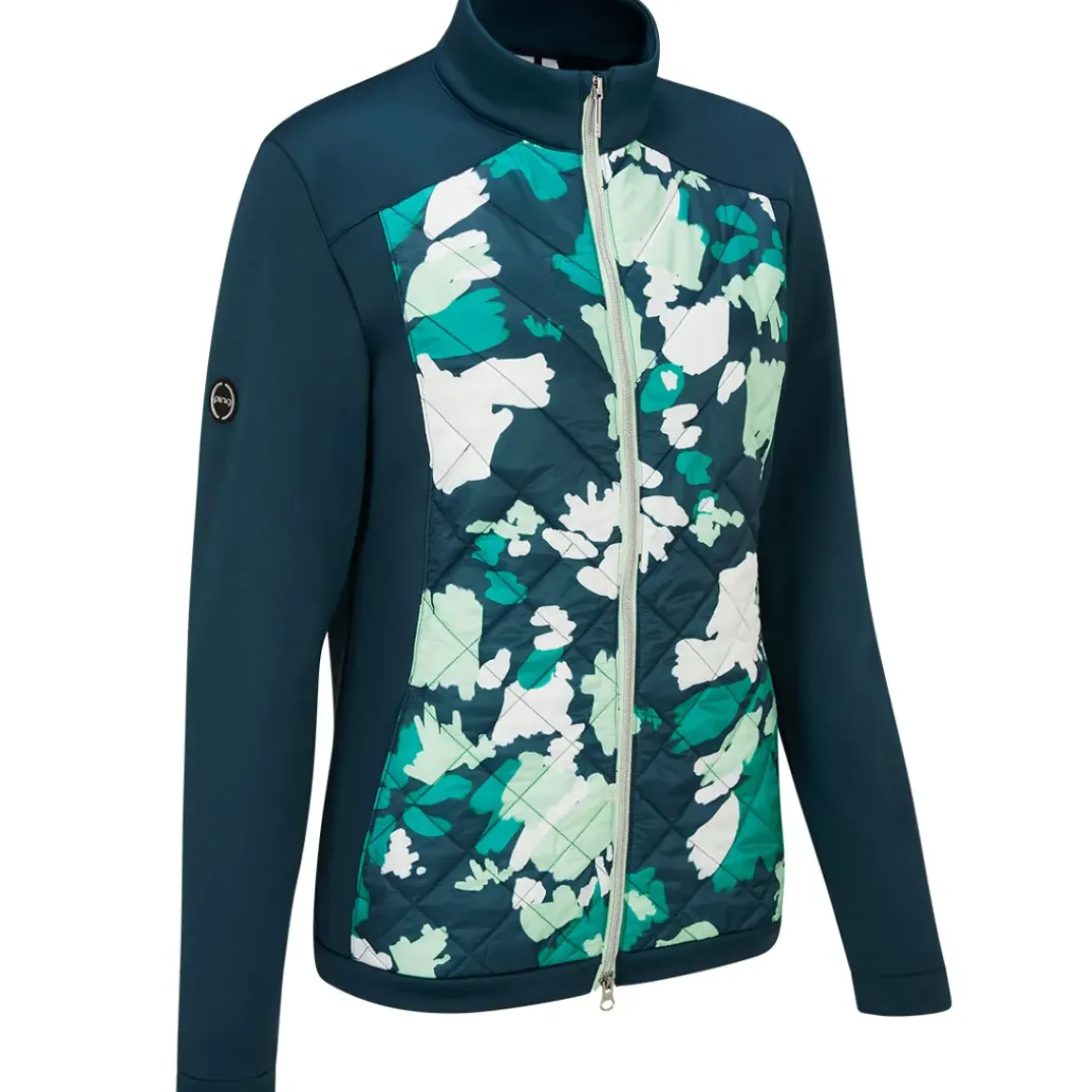 The PING Ashlynn is a hybrid jacket that ensures you remain comfortable in cold weather situations. This stylish Sensorwarm jacket features an insulated front panel quilting at the front to keep you warm, with a fleece body at the rear and sleeves for total comfort whilst playing golf. The garment is stretch-enhanced for greater mobility, offers wind and water resistance, plus is highly breathable for extra performance. Complete with a full-zip opening, and highlighted with a beautiful printed front panel for added style.