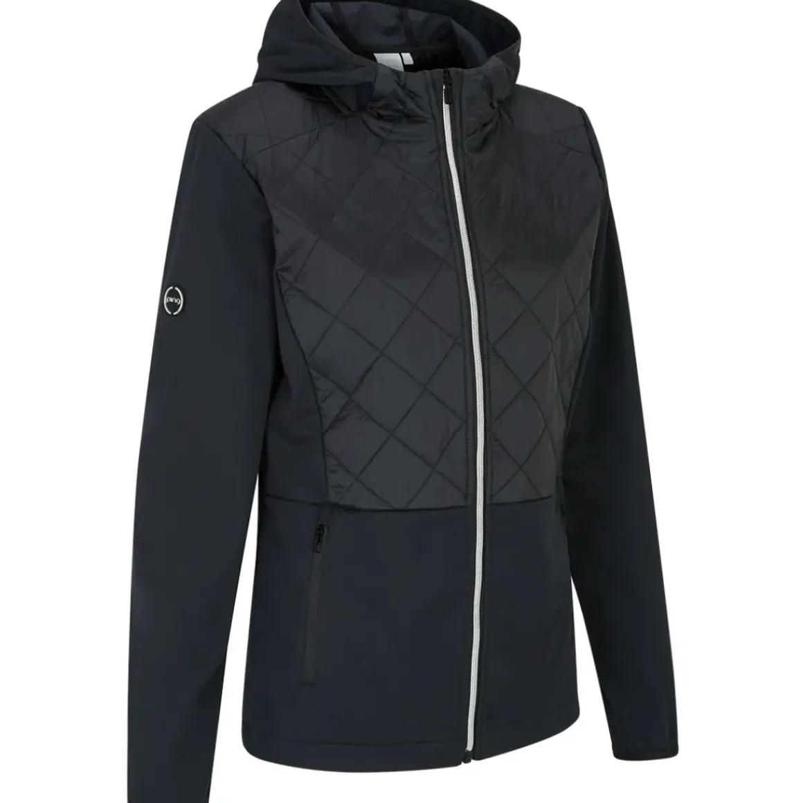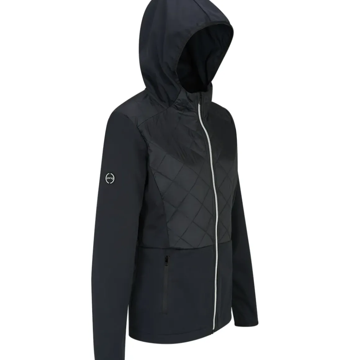 This beautiful PING jacket looks absolutely fabulous while the materials provide excellent performance on the golf course. PING designed the garment as part of the Sensorcool platform range, with moisture movement and stretch properties to offer the ultimate freedom of movement and comfort. The design features a full-zip opening for adjustability and is highlighted in part with a quilted upper body for beauty on the golf course. Equipped with front pocket spaces, hood for shielding, and highlighted with ping branding for authenticity.