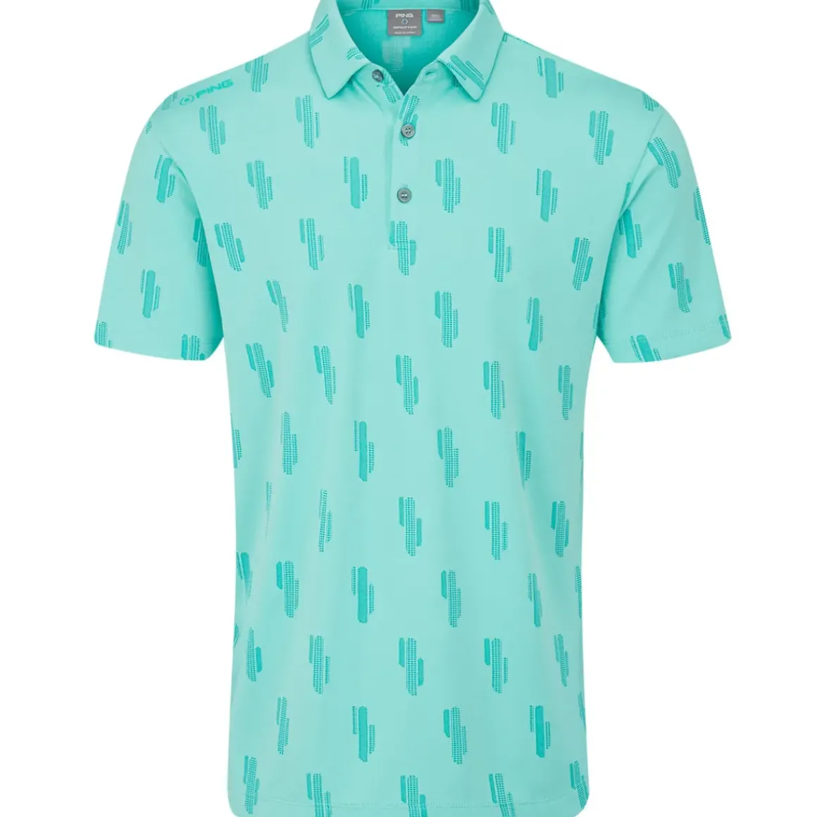 The PING Arizona Cactus polo shirt has been engineered to provide comfort in all conditions thanks to SensorCool technology fabric. It has a performance stretch and is moisture-moving, with fast drying capabilities for comfort as you play golf. The polo shirt is crease-resistant, plus is highlighted with a graphic print for a stylish appearance.