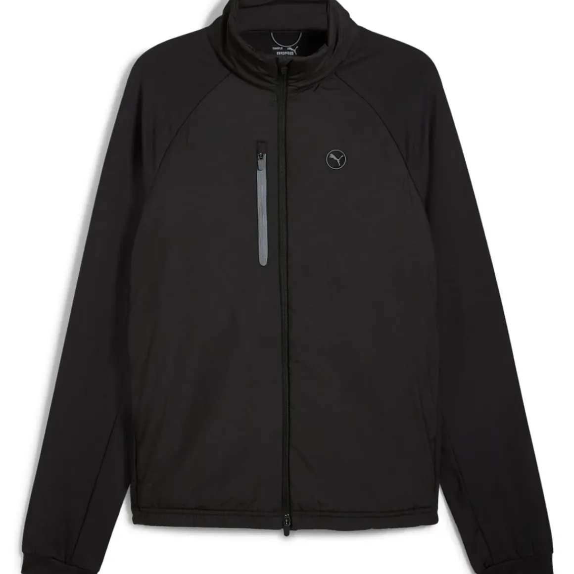 Designed with the elements in mind, the PUMA Golf Hieland jacket is ready to protect you from the cold in style. This hybrid jacket features ultra-soft CLOUDSPUN WRMLBL sleeves and sides, with a water-resistant front filled with Primaloft insulation for increased protection. The full-zip garment has a performance stretch and has internal and external chest pockets for additional storage.
