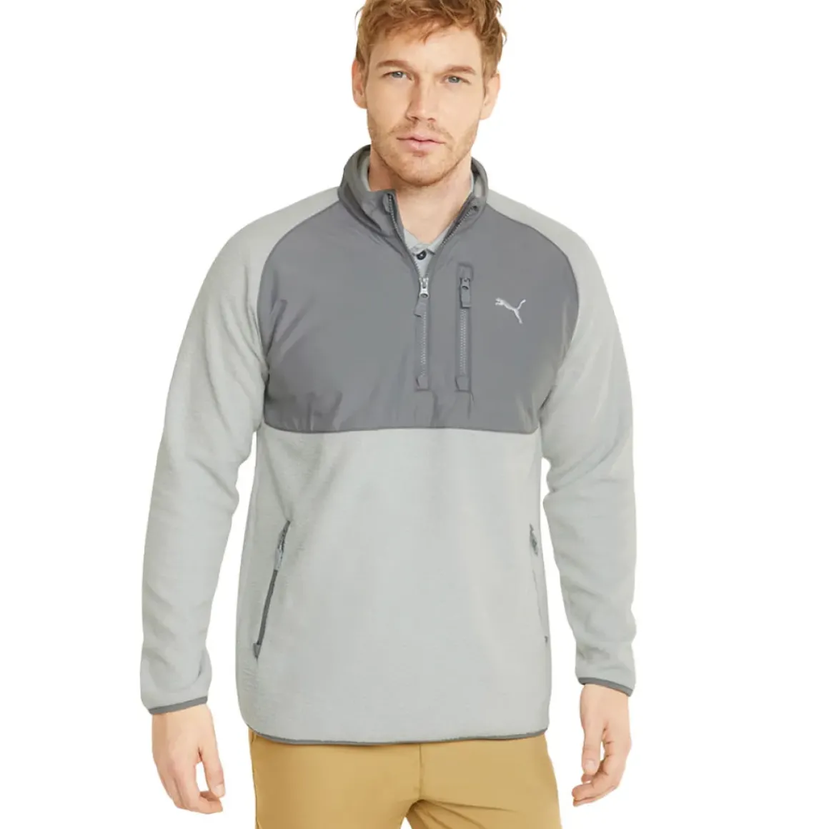 A new addition to performance layering, delivering a 4-way stretch and warmth with the style and sophistication that you’ve come to expect from PUMA Golf. The is the perfect 1/4 zip fleece mid layer for your winter session, with zip hand pockets and an additional chest pocket for your scorecard, etc. The garment is highlighted with PUMA Cat logo on the left chest for added style.