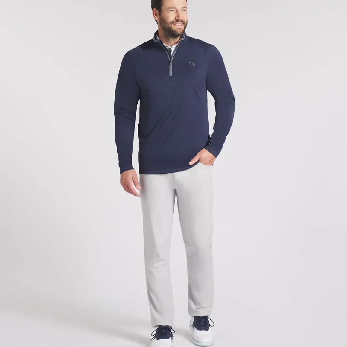 The PUMA Golf Waffle Fleece mid-layer is a new addition to performance layering, this piece provides 4-way stretch and has a brushed interior for warmth while maintaining style and sophistication. Designed with a quarter zip opening for adjustability and highlighted with PUMA Cat branding for authenticity.