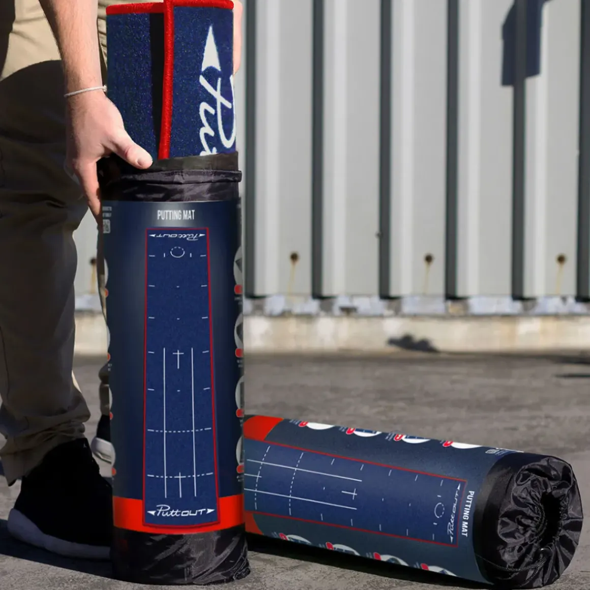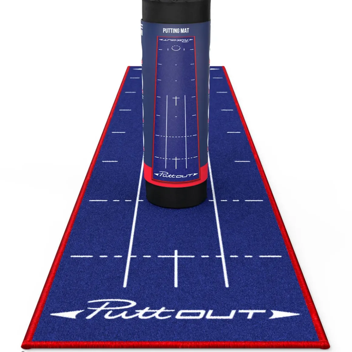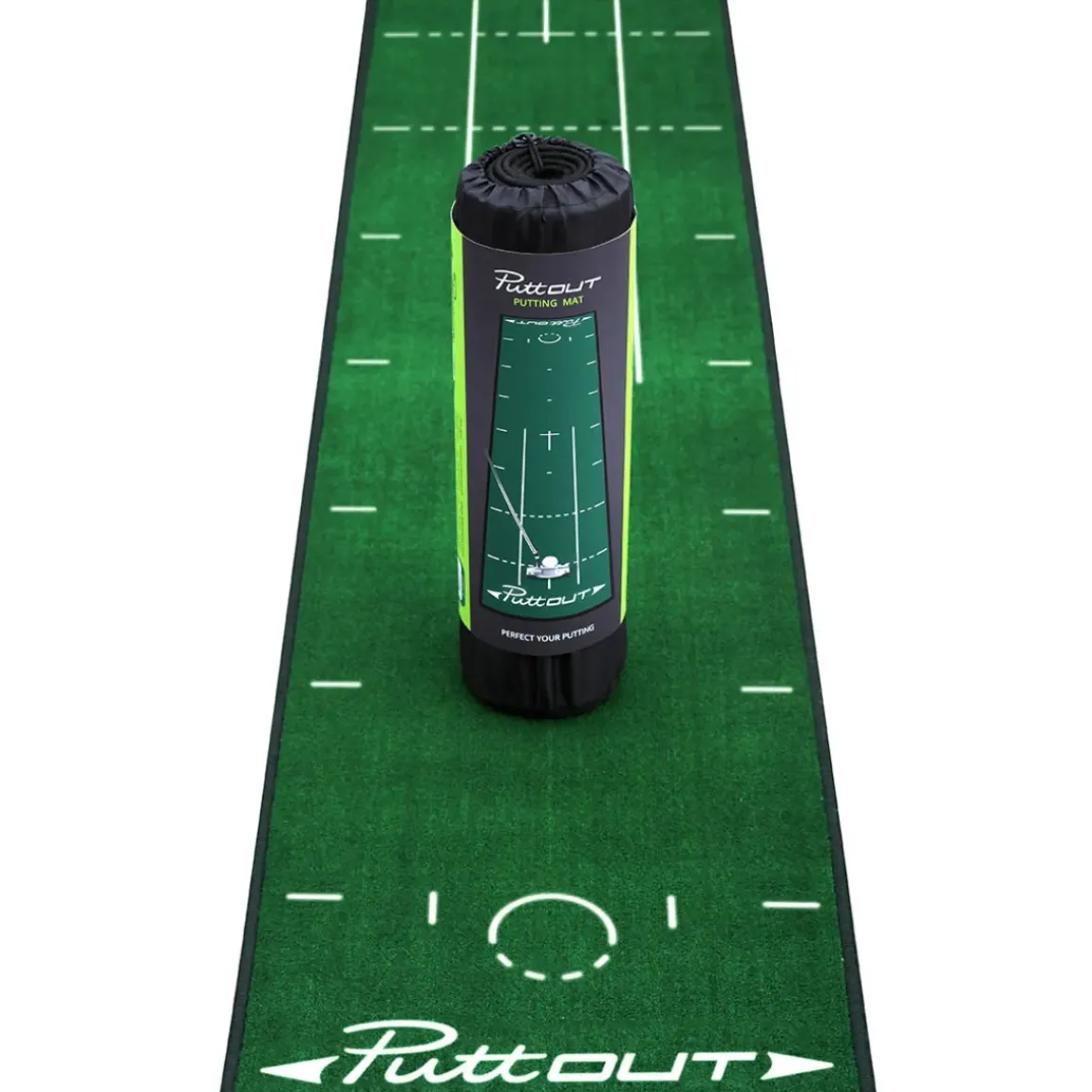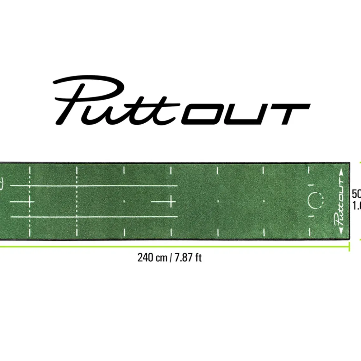 Practise makes perfect, with the highly durable PuttOUT Deluxe putting mat. This nylon mat with heavy duty rubber backing ensures you can practise your putting anytime and anywhere. The mat has a stimpmeter reading of 10, to replicate a medium to fast paced green, with alignment lines and foot markers from 6 foot out.