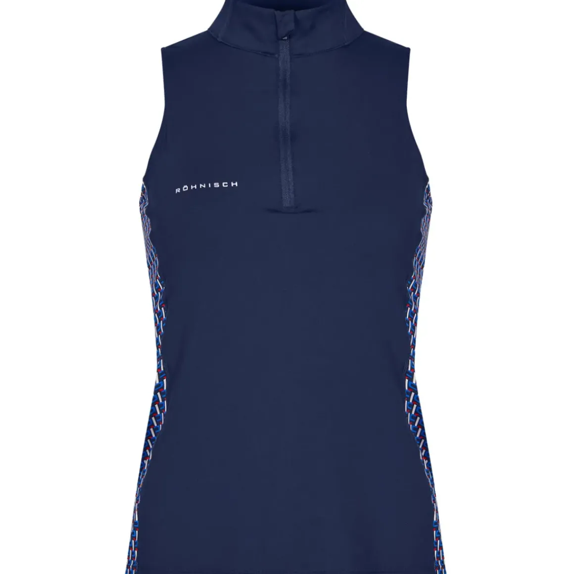 The Rohnisch Bonnie printed sleeveless polo shirt is made in a breathable fabric, equipped with a 4-way stretch for comfort on the golf course. Beautifully designed with side panels in contrast print and a half-zip placket for easy adjustment. Regular fit.
