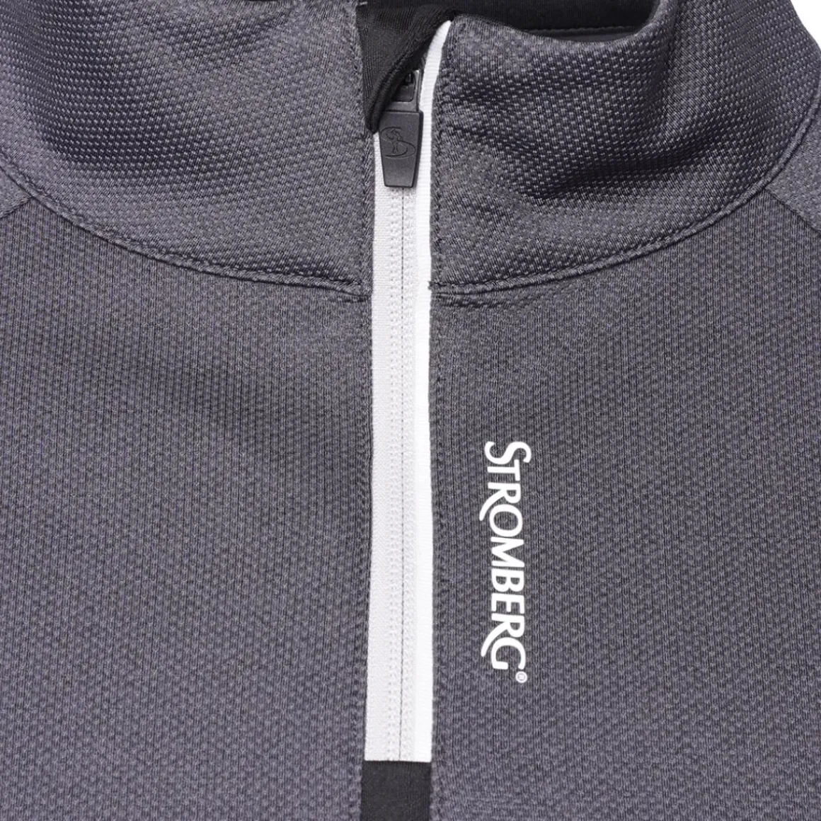 The Stromberg Target mid-layer has been constructed with performance fabrics, making it light breathable and stretchy which is perfect for playing golf. This performance layer also features a durable water-repellent finish for additional protection during sudden rain showers. Designed with contrasting colour side panels and underarms, a raised neck, and a half-zip opening for adjustability. Plus is highlighted with Stromberg silicone branding on the front and rear for added distinction.