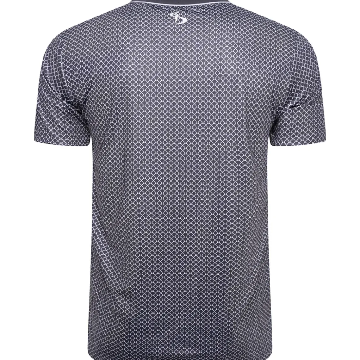 Stromberg designed this polo shirt to perform with a high stretch element in the fabric to allow for optimal freedom of movement. It is moisture-wicking to keep you dry and comfortable, plus an extreme UPF 50+ protection rating to keep you safe from harmful rays. The design features an all-over golf tee print, contrasting trim knit collar, plus is highlighted with Stromberg silicone branding front and rear for maximum appeal.