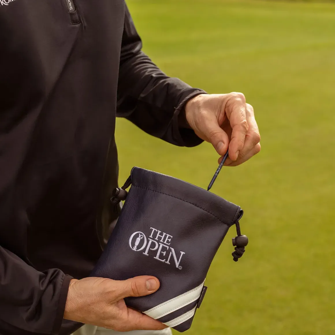 This officially licenced product from the R&A is highlighted with 150th The Open branding to commemorate this years championship at St Andrews. The drawstring pouch has been constructed with a soft leather material, with a velour lining to protect any items placed inside.