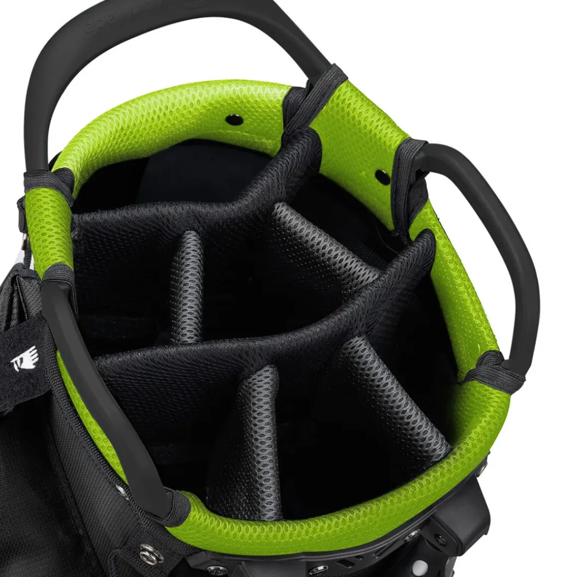 This superbly designed TaylorMade Select Plus Stand Bag features a 7-way top (9″) with a front integrated grab handle and 2 grab handles on the side covered with colour-coordinated air mesh cushioned fabric, with full length dividers.