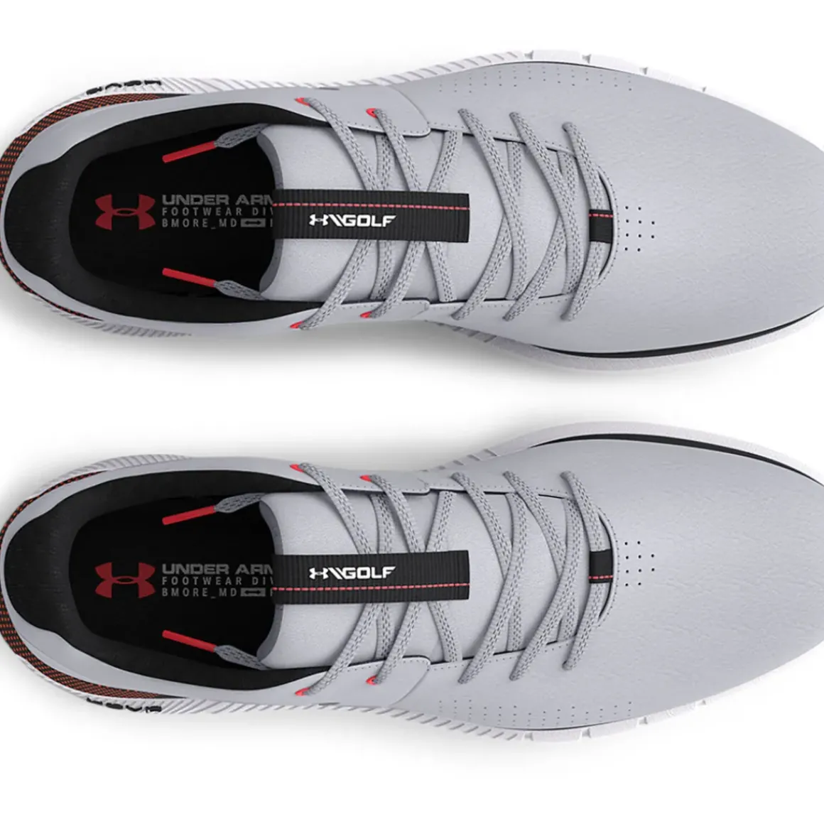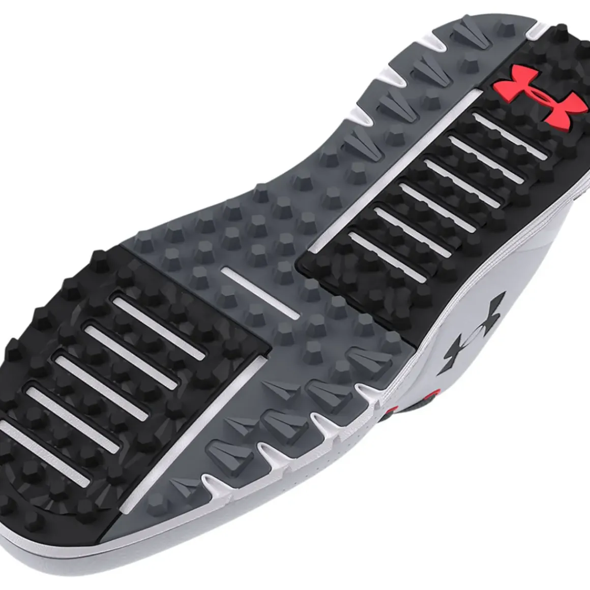 The lightweight spikeless outsole has been constructed with UA rotational resistance moulded traction elements for excellent lockdown traction on a variety of surfaces. It provides more flexibility on or off the golf course without any loss of traction. E Sizing built to better fit athletes with wide feet.