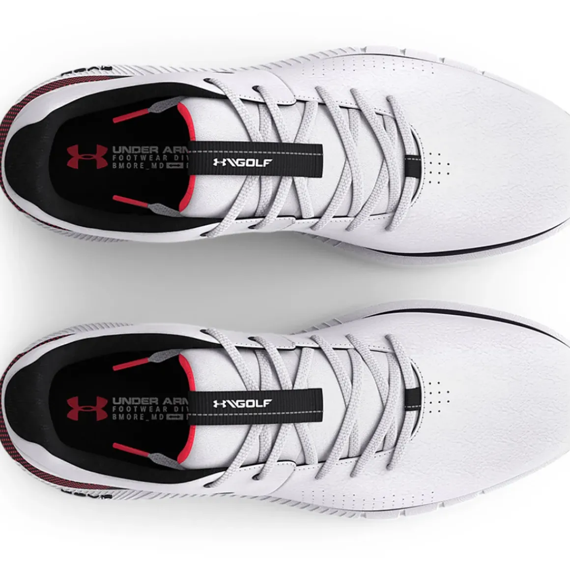 The lightweight spikeless outsole has been constructed with UA rotational resistance moulded traction elements for excellent lockdown traction on a variety of surfaces. It provides more flexibility on or off the golf course without any loss of traction. E Sizing built to better fit athletes with wide feet.