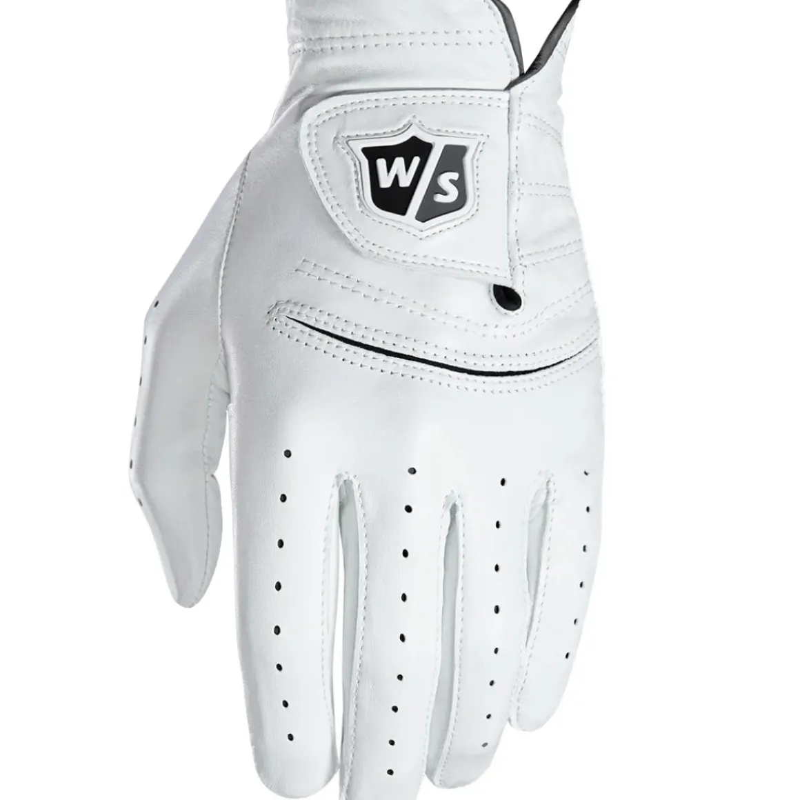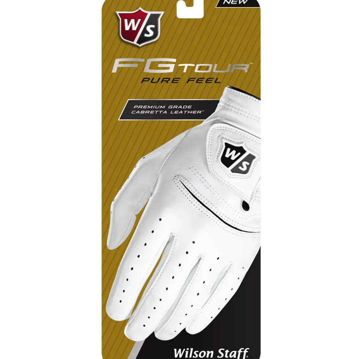 The Wilson Staff FG Tour golf glove has been made to Tour specifications, for a precise fit and optimum feel. Made from premium Cabretta leather with a reversed thumb seam and pre-curved fingers for additional comfort. The glove provides an all-weather grip in most course conditions and has a Wilson Staff branded Velcro tab for a precise fit.